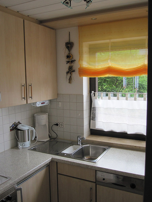 Die Küche ist mit Kühlschrank mit Gefrierfach, Backofen und Ceranfeld sowie Spülmaschine, Kaffeemaschine und Wasserkocher ausgestattet. Küche und Bad