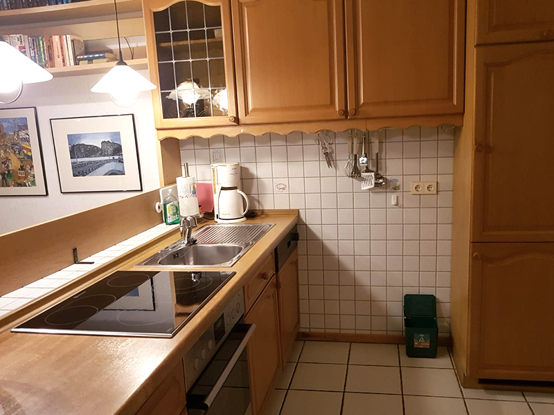 In der Küche gibt es einen Kühlschrank mit Gefrierfach, Backofen mit Ceranfeld sowie eine Spülmaschine und natürl. Kaffeemaschine und Wasserkocher.