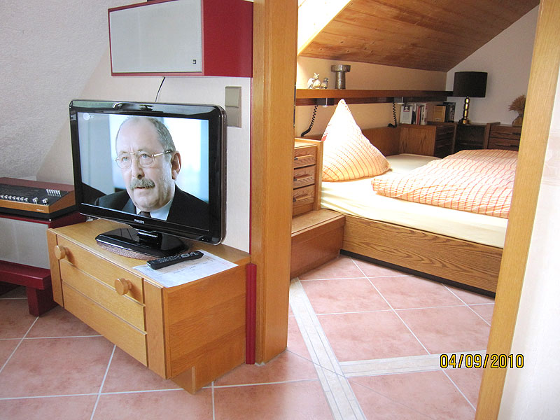 Im Wohnraum gibt es einen großen LCD-Flachbild-FS, ein Radio sowie einen Telefon-Anschluss. Das Schlafzimmer hat Betten 1,80 x 2,00 m, die speziell für Senioren eine höhere Liegefläche haben. Das Bad ist mit Dusche, WC und Waschbecken ausgestattet und hat ein Fenster.